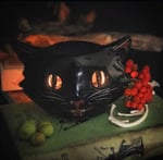 A nostalgic themed cat oil/ melt burner for use with a tealigh. Cast a serene cosy atmosphere as the cats eyes glow and aroma fills the room.